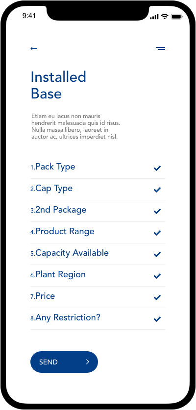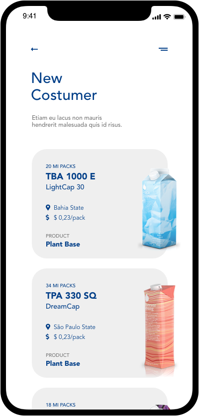 The tetrapak connect app was designed as a sales force tool made to get together both factories with production idle and costumers who needs packaging solutions.